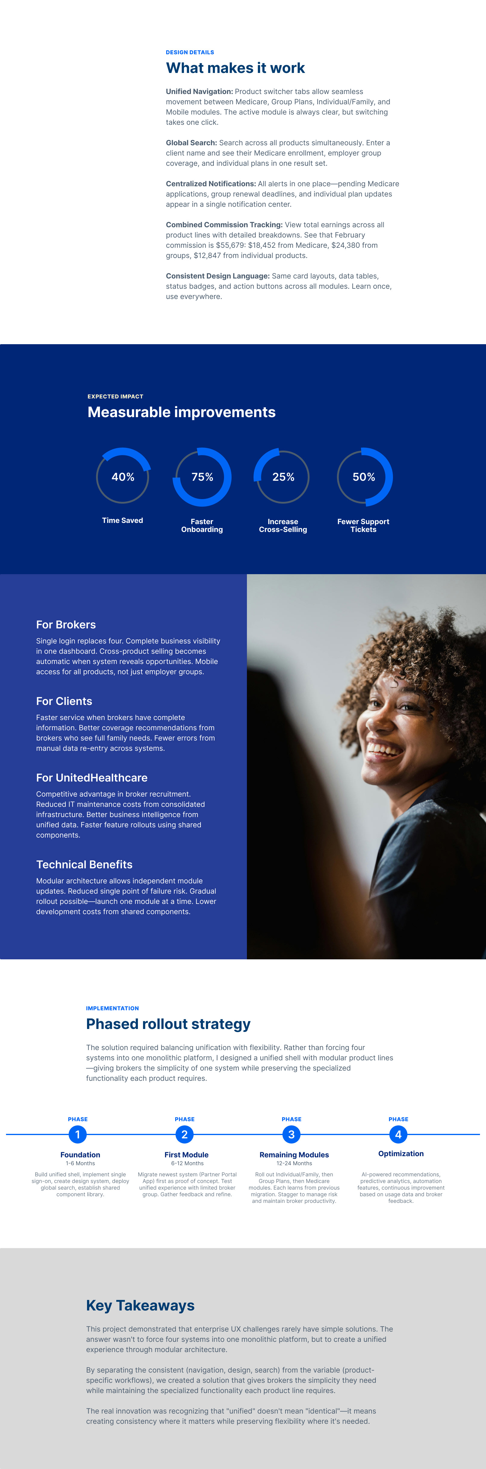 A strategic redesign of UnitedHealthcare's broker ecosystem, consolidating four disconnected portals (Medicare, Employer Groups, Individual/Family, and Mobile) into a single unified platform. This project demonstrates how modular architecture and consistent design systems can eliminate friction, increase broker productivity by 40%, and create a competitive advantage in the insurance industry.
